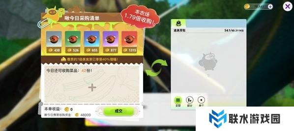 在大地图上可以看到各种农场,在农场的啾啾那里除了可以买到各种农作物,还可以根据采购清单来制作烹饪进行售卖,这种方法相比直接卖材料可以获得更多的金币,但是相对我们也需要付出一定的劳动。